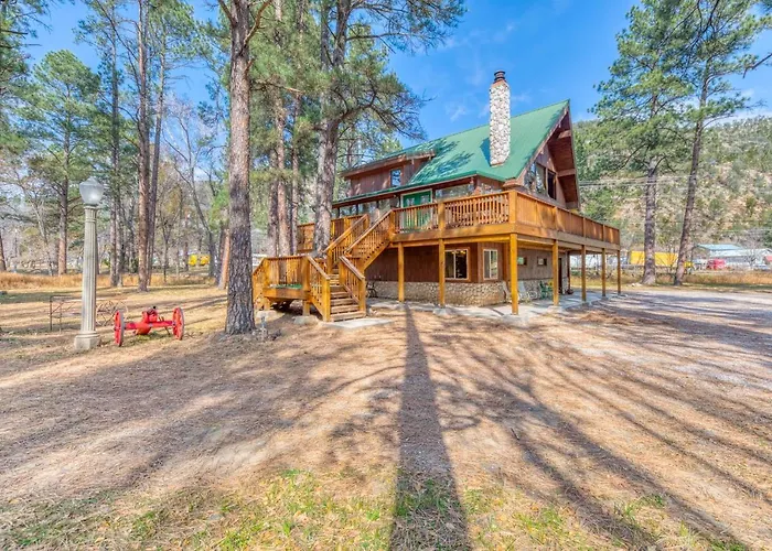 La casa de vacaciones se encuentra al lado de lugares de interés natural como el Parque Fluvial Two Rivers Ruidoso. Situada a unos 10 minutos en coche del Happy Hiker Ruidoso, esta villa también está a unos 15 minutos en coche de lugares de ocio como la Bodega Noisy Water.